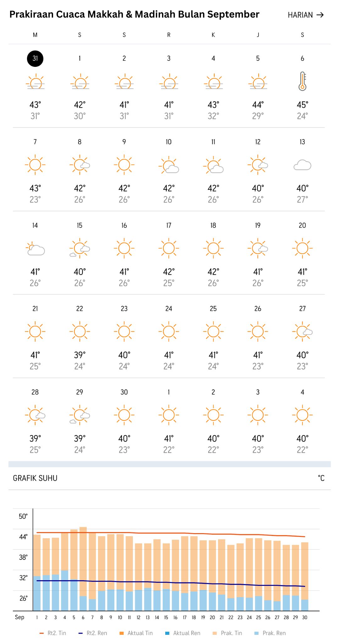 Kondisi Cuaca Makkah dan Madinah bulan September 2026